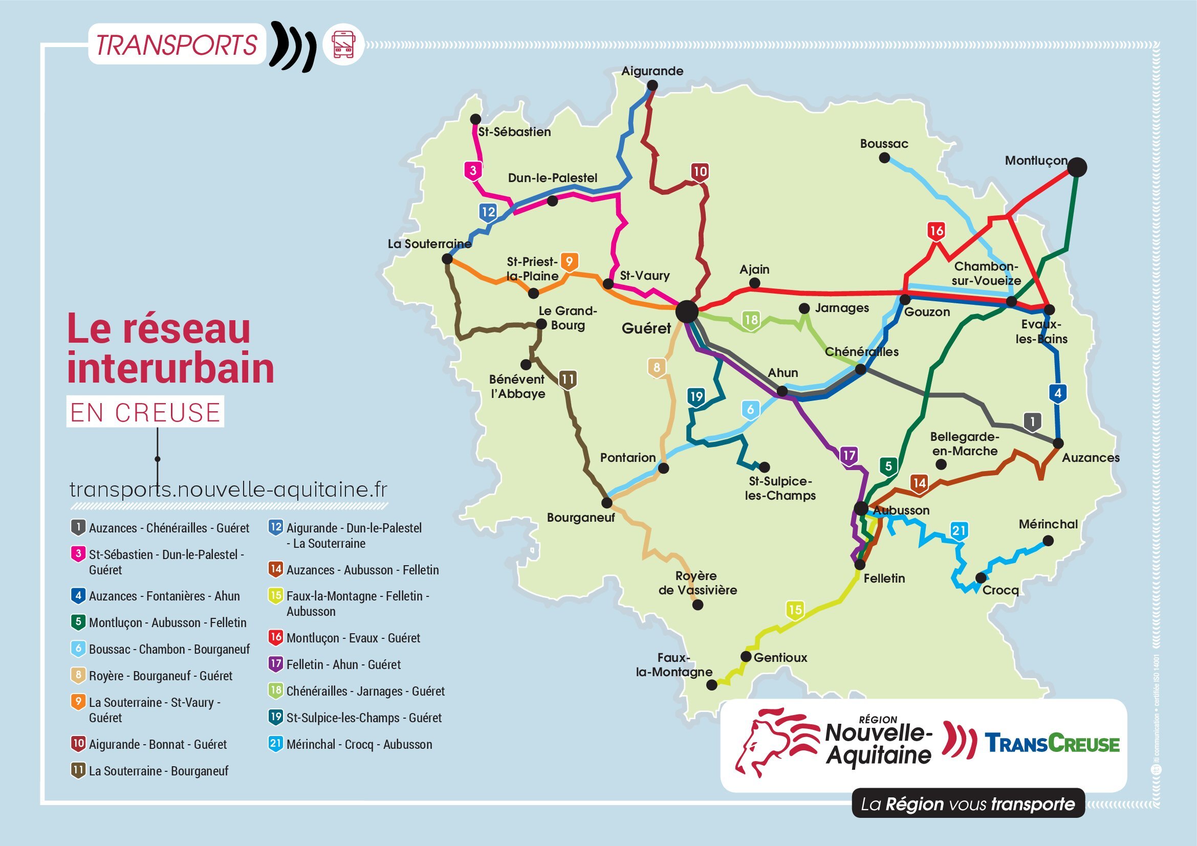 Dans le département, le réseau interurbain Creuse, c’est aussi 17 lignes de cars pour vous déplacer facilement !